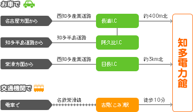 カーナビゲーションシステムに当館の住所または電話番号を入力しますと、「知多火力発電所構内」を案内される場合がございます。