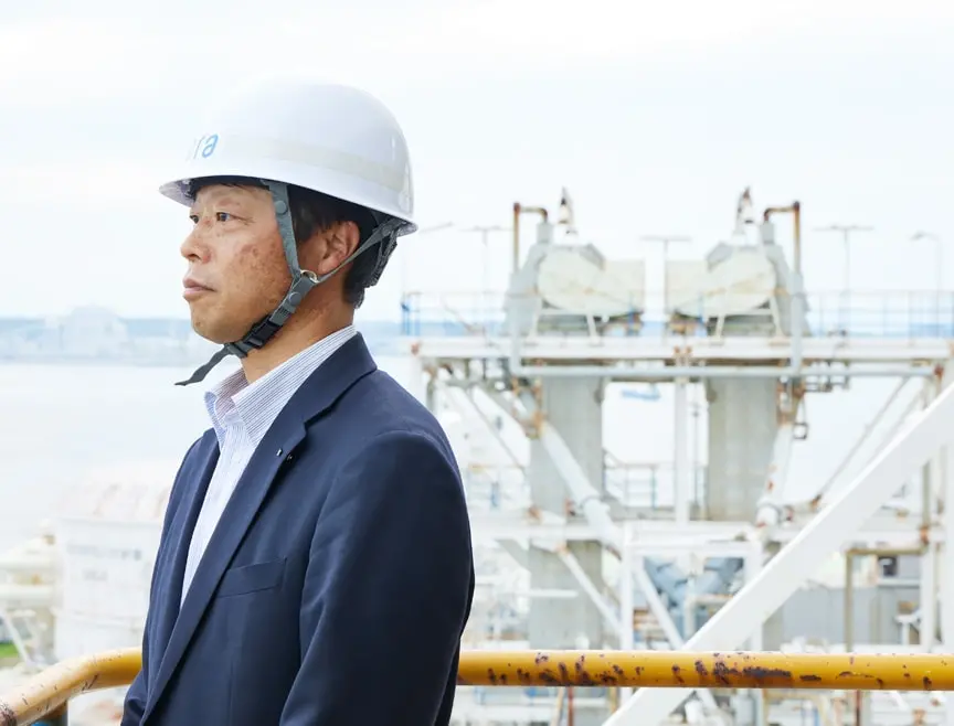 「世界初」を実現するフィールドに選ばれたのは、碧南火力発電所。日本最大にして、世界最大級の石炭火力発電所だ。同発電所の所長であり、碧南火力燃料アンモニア設備の建設所長を務める谷川勝哉は、プロジェクト発足時の心境をこう振り返る。