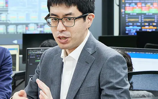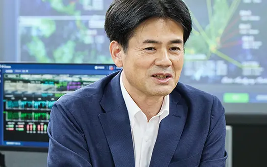 発電所の仕事を革新するソリューションの数々。それらは、JERA社内の変革にとどまることなく、国内外の顧客にも提供されている。すでに2018年から導入・提供を開始している「予兆管理サービス」はその象徴的な事例だ。サービスの内容は、クラウドを活用し、遠隔にて発電所の運転データをリアルタイムに分析することで、トラブルの予兆や熱効率低下を検知できるというもの。DPPプロジェクトでは、新たにグローバルデータアナライジングセンター(G-DAC)が立ち上げられ、サービスを24時間化することが決定。国内外の顧客に対する「予兆管理サービス」の提案・提供から、G-DACの業務検討まで、幅広い役割を担っている島添道裕は、このサービスの開発者でもある。