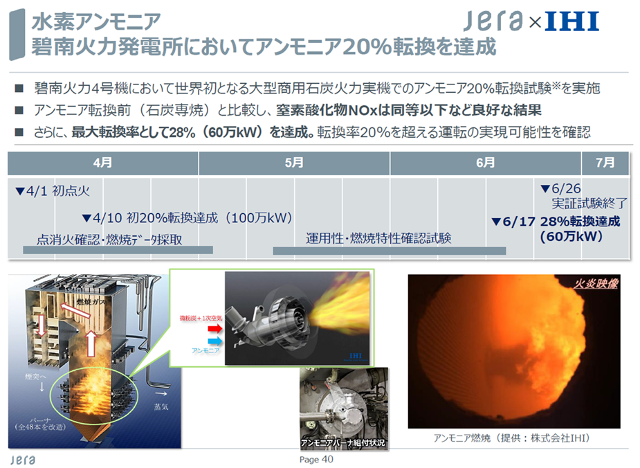 世界初となる大型石炭火力発電所での20%燃料アンモニア転換の実証試験を実施し、良好な結果が得られました。現在は商用化に向けて設計・工事を進めており、2050年ゼロエミッション火力の達成に向けて挑戦を続けています。世界初の試みに挑戦しているJERAの取り組みをぜひ感じてください。